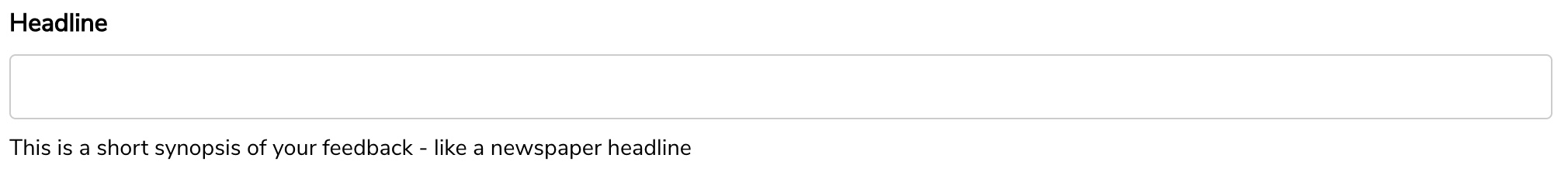 The headline is a short synopsis of a longer piece of feedback (See "Feedback" field below). You can think of it like a newspaper headline.