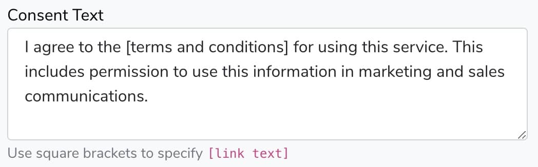 The consent text can be edited. Unless you are on a Premium plan, you will still need to link to the standard Boast terms and conditions. That link can be incorporated by surrounding text in square brackets [].