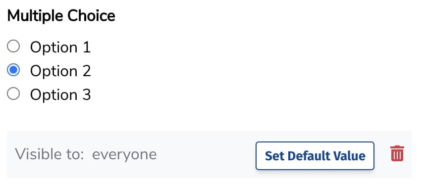 Select a choice by default by clicking on an option and then clicking Set Default Value.