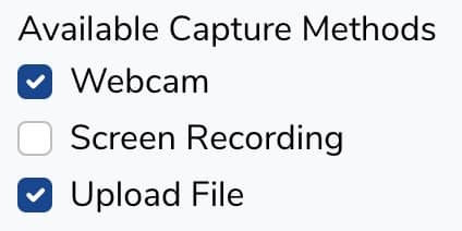 Videos can be collected on both desktop, tablet, and mobile. Users have the option to record a video live, record their screen, or upload a video they recorded previously.