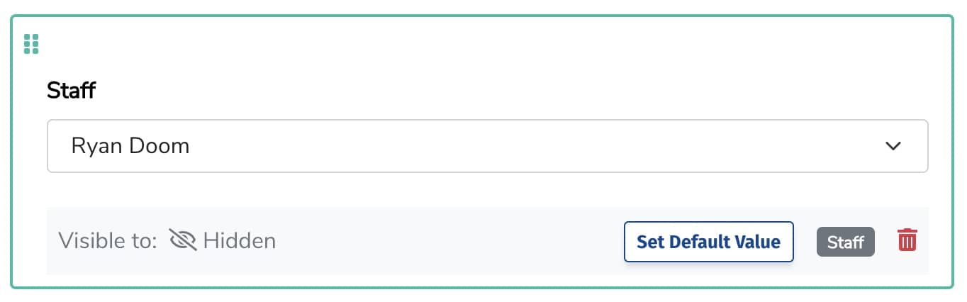 - Select the desired staff member in the field on the left and click Set Default Value.