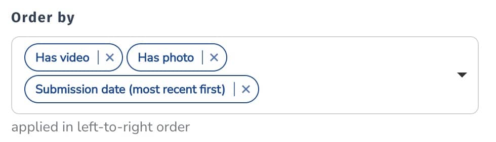 Choosing "Has video", "Has photo", and "Submission date" will display all responses with a video first, then all responses with a photo, and then all other responses. Within each of those categories, they will be ordered by date.