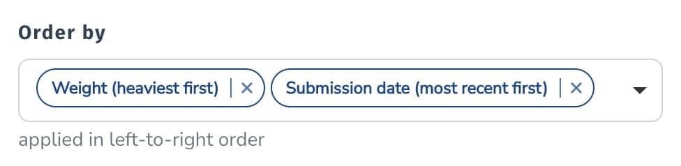 Selecting "Weight (heaviest first)" and "Submission date" will allow you to choose a few featured responses to display first by editing the weight of the responses. After those featured responses, everything else will be shown in date order.