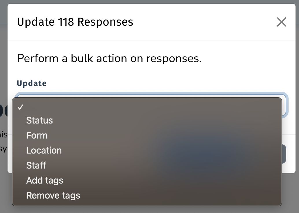 Status - make the selected responses Published, Private, Needs Review, or Unlisted
