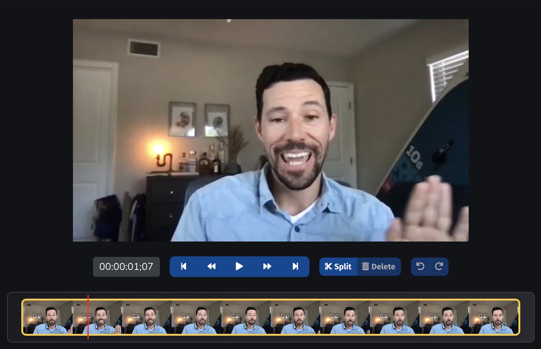 Click Delete to remove a clip from your video. The currently selected clip (highlighted in yellow) will be deleted.