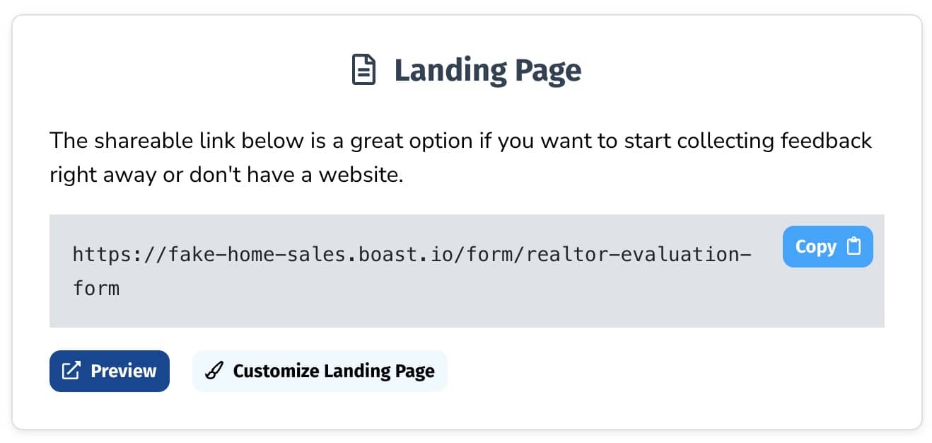 A shareable link you can send to your audience. This is a great option if you want to start collecting feedback right away or don't have a website.