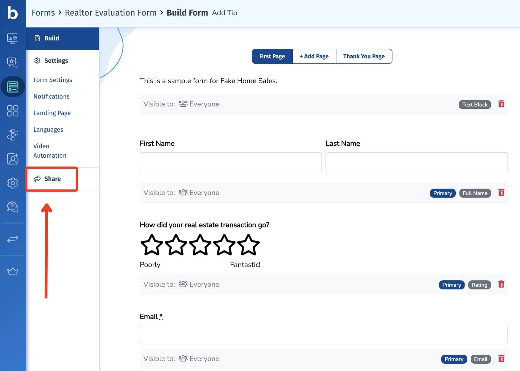 Or, if you are already editing the form, click "Share" in the left sidebar: