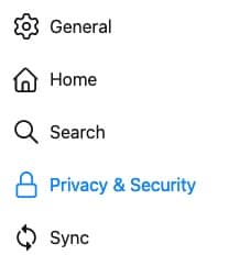 - In the left sidebar, select Privacy & Security.