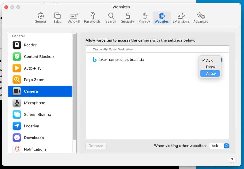 - Find the website where the Boast form is embedded and make sure it is set to Allow.