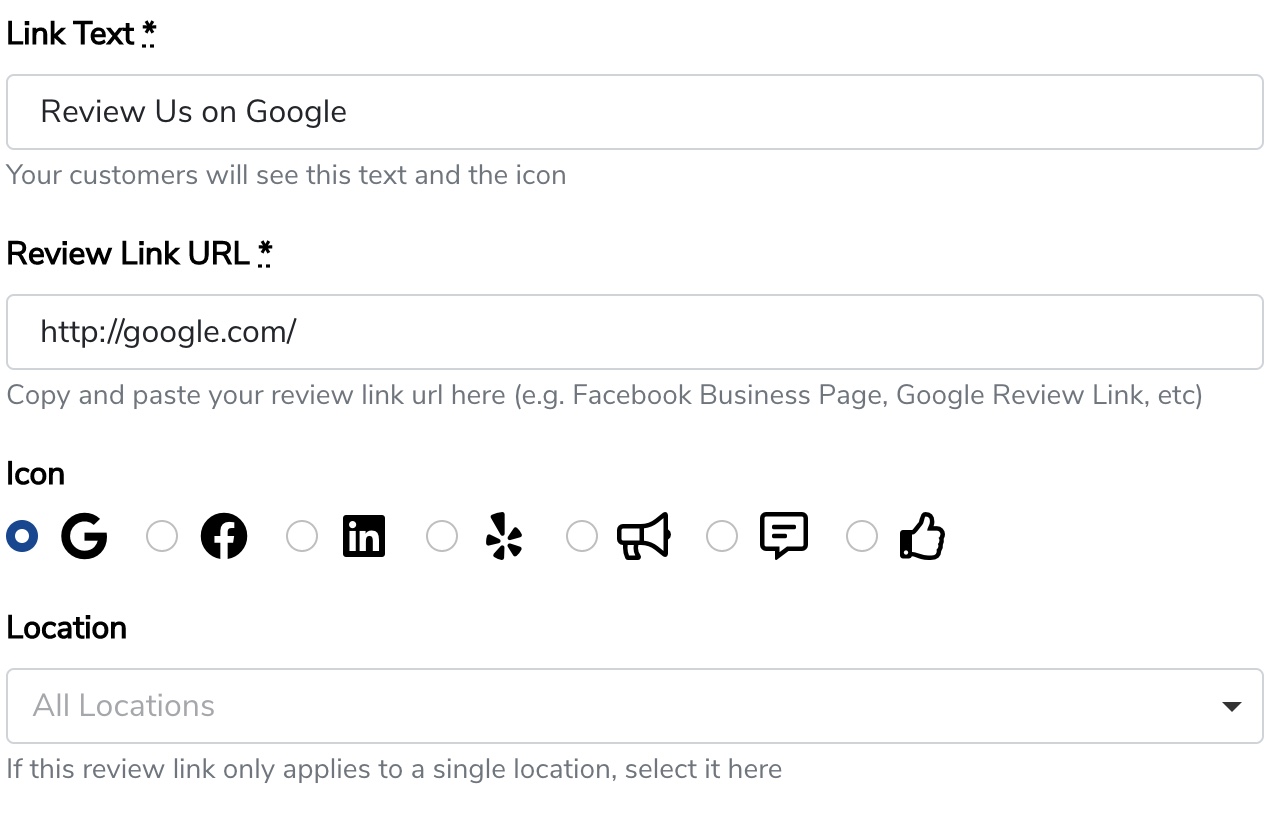 - Click Create Review Link at the bottom to save.