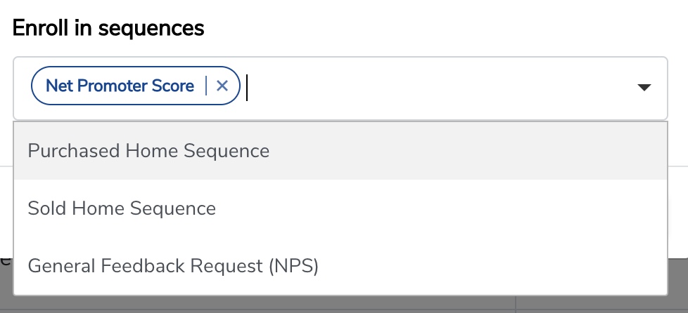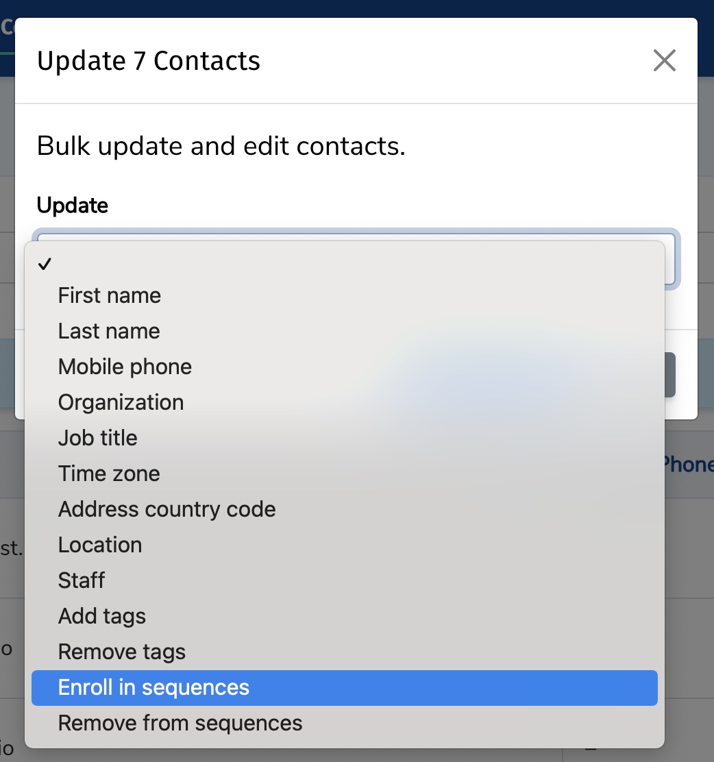 - In the Update dropdown, select Enroll in Sequences.