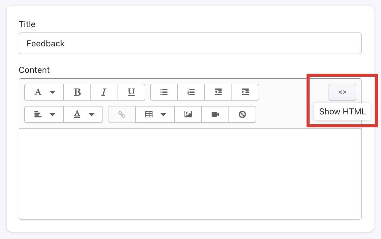 - Edit a page and click on the < > symbol to switch to HTML mode.