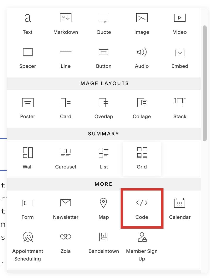 Note: Squarespace allows 3rd-party embeds on Business and Commerce plans