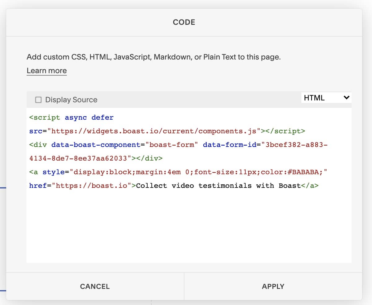 More information and a video tutorial can be found here: https://support.squarespace.com/hc/en-us/articles/206543167-Code-Blocks