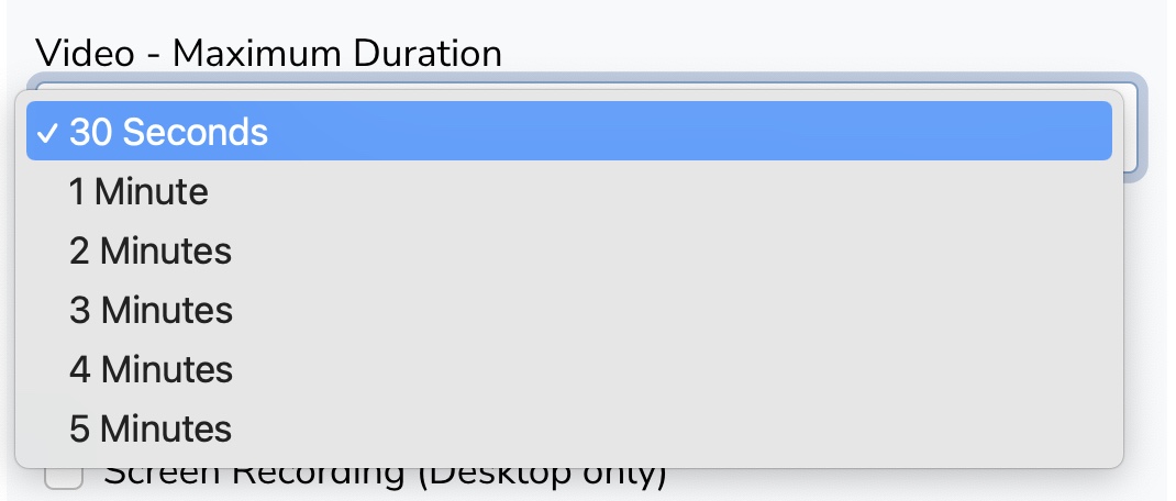 - Use the "Video - Maximum Duration" dropdown to select your desired maximum duration
